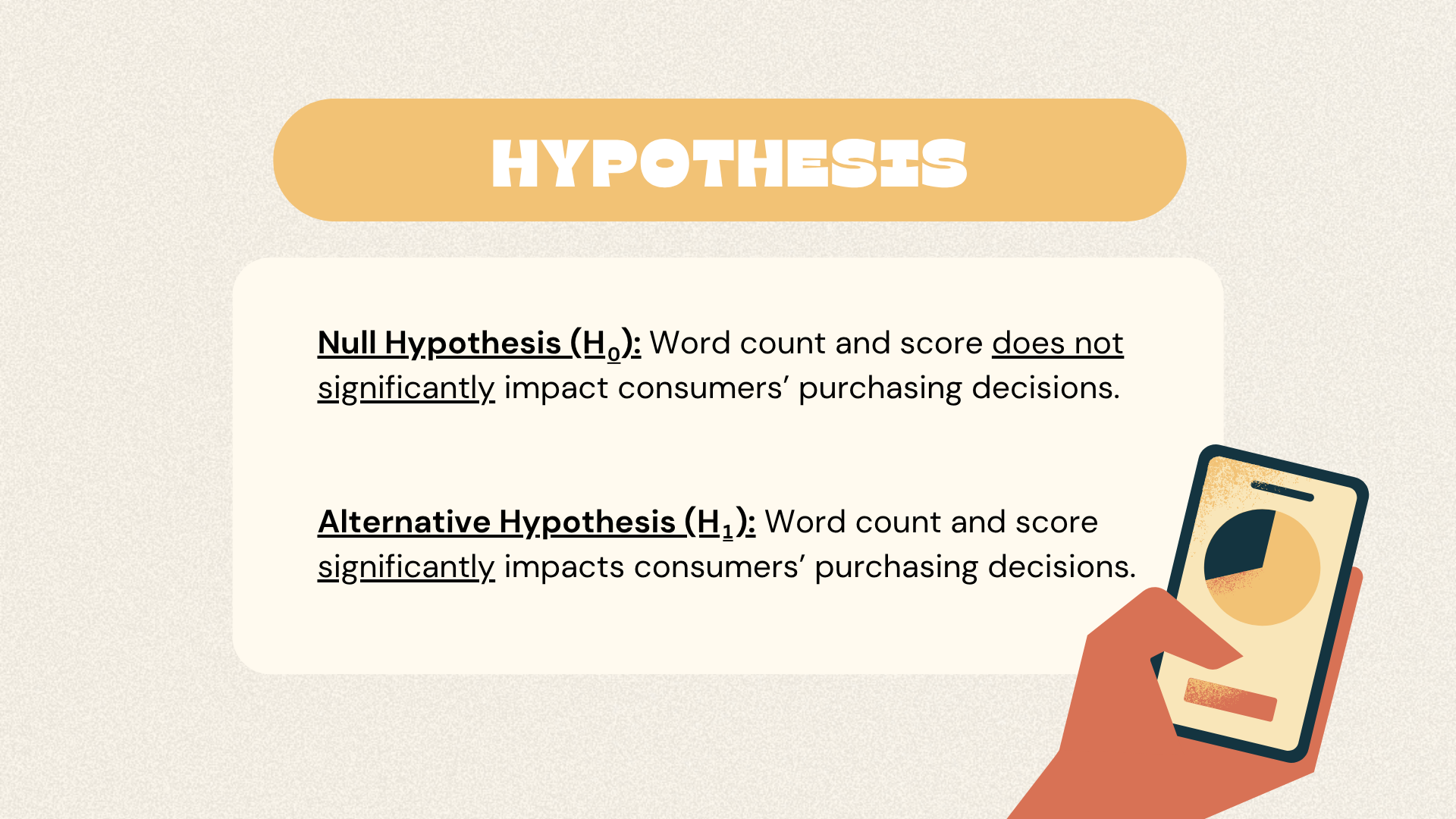Notorious for letting another person's experience influence my buying when scrolling on the reviews section, this project puts that to the test — observing whether features an online review impacts a person's purchase decision. After identifying our variables (star rating and word count on helpfulness) and formulating our hypothesis, I led the process in computing the variables into SPSS to conduct an exploratory and multiple regression analyses extracting interpretations from figures, concluding that consumers' purchasing decisions are only significantly impacted when product reviews include a high word count.